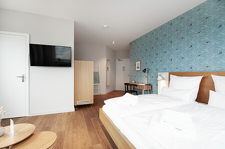 Genießen Sie Ihren Aufenthalt in einem unserer sechs gemütlichen Standard-Zimmer, die Platz für zwei Personen auf etwa 19 qm Wohnfläche bieten. Diese einladenden Zimmer bieten Ihnen allen Komfort, den Sie für erholsame Tage benötigen – und schönste Blicke über Natur, Strand und Meer (seitlicher Meerblick). Jedes Zimmer verfügt über ein modernes Duschbad und eine charmante Leseecke, die zum Verweilen und Entspannen einlädt. Ein kleiner Schreibtisch bietet Ihnen einen angenehmen Platz zum Arbeiten oder zum Schreiben von Postkarten. Zudem steht Ihnen ein praktischer Mini-Kühlschrank zur Verfügung, um Ihre Getränke und Snacks stets gekühlt zu halten. Für eine ungestörte Nachtruhe sind die Schlafzimmerfenster mit Moskitonetzen ausgestattet, sodass Sie die frische Luft in vollen Zügen genießen können. Erleben Sie Komfort und Gemütlichkeit in unseren liebevoll eingerichteten Standard-Zimmern – Ihr perfekter Rückzugsort für erholsame Tage.
